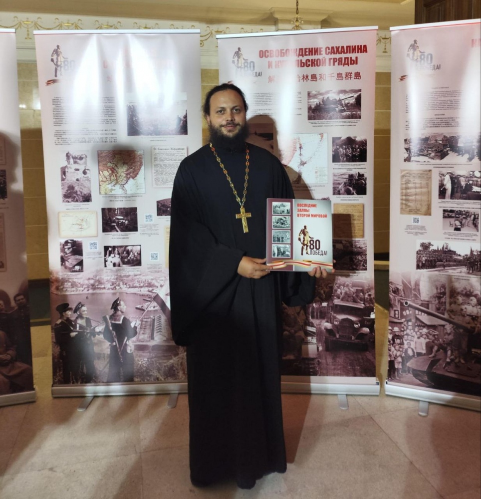 14 августа 2025 года настоятель храма святителя Иннокентия Иркутского иеромонах Софроний (Медведенко) принял участие в презентации фотоальбома государственного архива Хабаровского края «Последние залпы Второй мировой» в Городском дворце культуры.