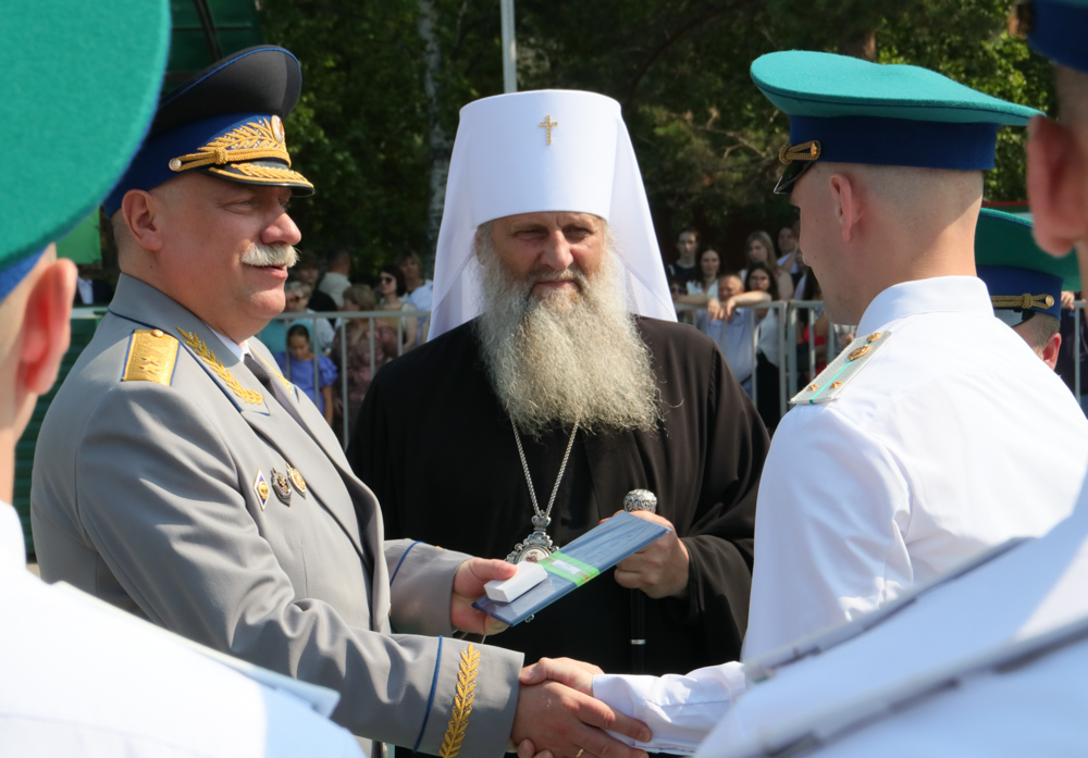 28 июня 2025 года митрополит Хабаровский и Приамурский Артемий поздравил с окончанием обучения молодых офицеров Хабаровского пограничного института ФСБ России.