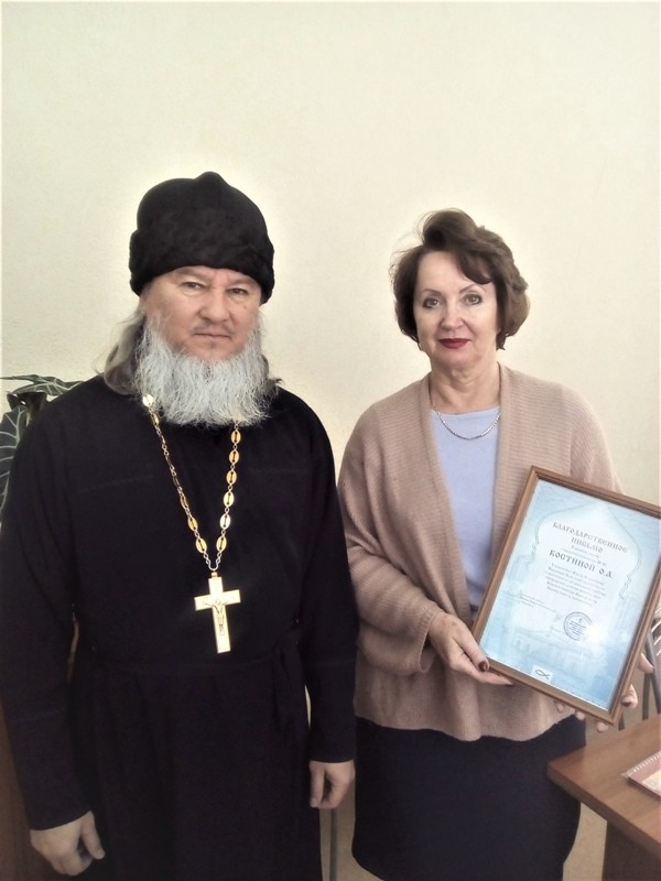 Началась встреча с вручения Ольге Андреевне благодарственного письма от Покровского храма «За помощь в организации и осуществлении деятельности приходской сестры милосердия».