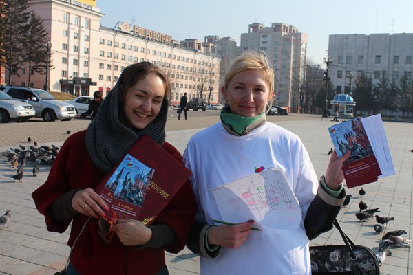 В четырех местах Хабаровска более 30 человек из пяти приходских молодежных клубов за два часа раздали 1000 информационно-просветительских буклетов и опросили порядка 450 человек.