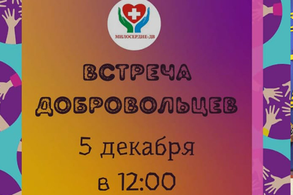 5 декабря 2021 года, во Всемирный день добровольца, волонтерское движение «Милосердие-ДВ» при Отделе по церковной благотворительности и социальному служению Хабаровской епархии объявляет встречу добровольцев социального служения – и тех, кто уже помогает, и тех, кто новичок и только рассматривает возможность такой помощи.