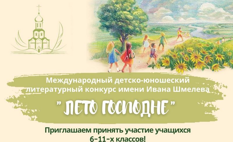 По благословению Святейшего Патриарха Московского и всея Руси Кирилла Издательский Совет Русской Православной Церкви при участии АНО "Центр духовно-просветительских программ имени святителя Филарета Московского" проводит одиннадцатый сезон Международного детско-юношеского литературного конкурса имени Ивана Шмелева «Лето Господне».